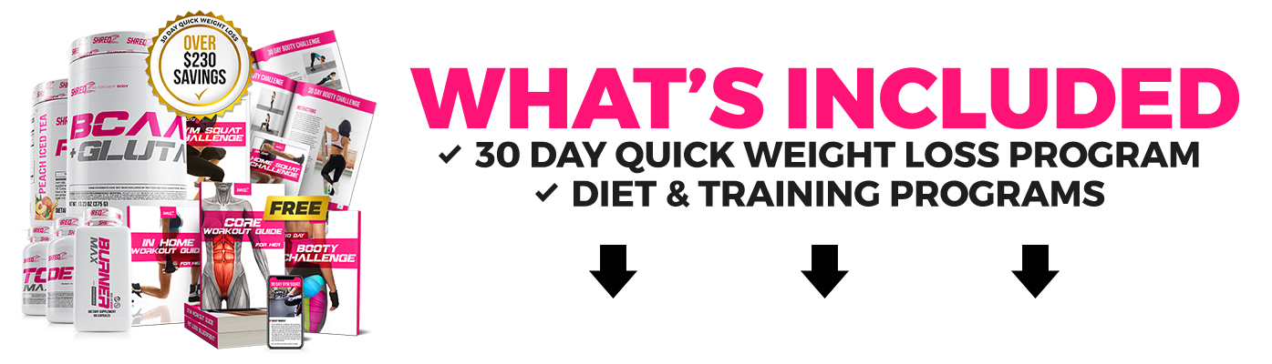 SHREDZ® 30 Day Quick Weight Loss Plan is our most effective program for reaching your fitness goal. All-in-one solution with diet and exercise guides, along with a set of some of our premium supplements, all tailored to your goal. This stack is designed to support weight loss and provide a boost of energy while aiding in toning and recovery. The exercise guides provide home and gym workouts to enhance your results even further.